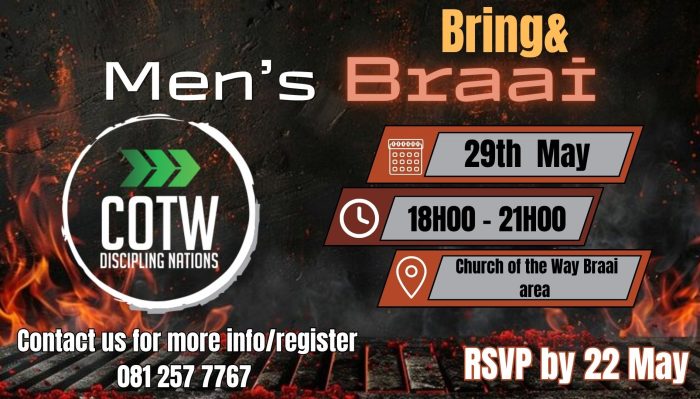 Stay up to date with the latest news and events. If you would like to register or just find more about any event that will be happening. Please feel free to contact the church offices on Whatsapp 081 257 7767 or email us at info@churchoftheway.co.za